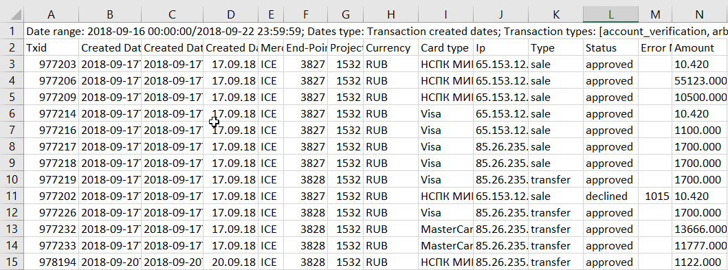 This report contains the list of transactions for the specified time period. To download the necessary data, the following criteria are used: dates, date type, transaction types, change status, transaction id, recurrent filter, time zone, CSV encoding. This report can also be downloaded by API for automated reconciliation or analysis: Remote transactions report. Additional criteria can be added by pressing the Criteria button: order status, currency, endpoints, projects, etc.