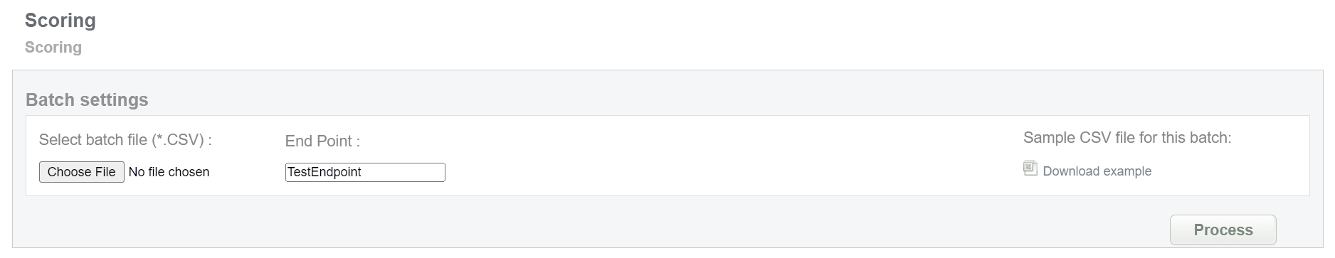 This batch allows to get information about card scoring. Collect order IDs and needed card data, assigned by Sepagon system and enter all information to the CSV file and upload it to receive card scoring information. An example of CSV file for upload is available on the same screen.
