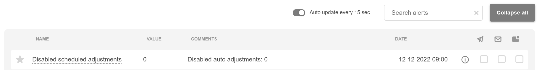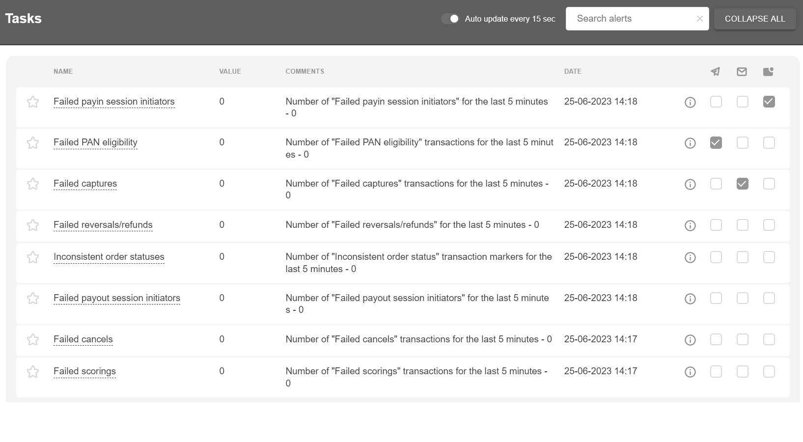 The screen is located in “Tools” – “Monitoring” section. This screen displays information about various errors that usually require quick response, as well as the options to subscribe for notifications about any errors via Telegram, Email or Push notification. Phone number and e-mail address are taken from the personal account (Manager or its employee account).