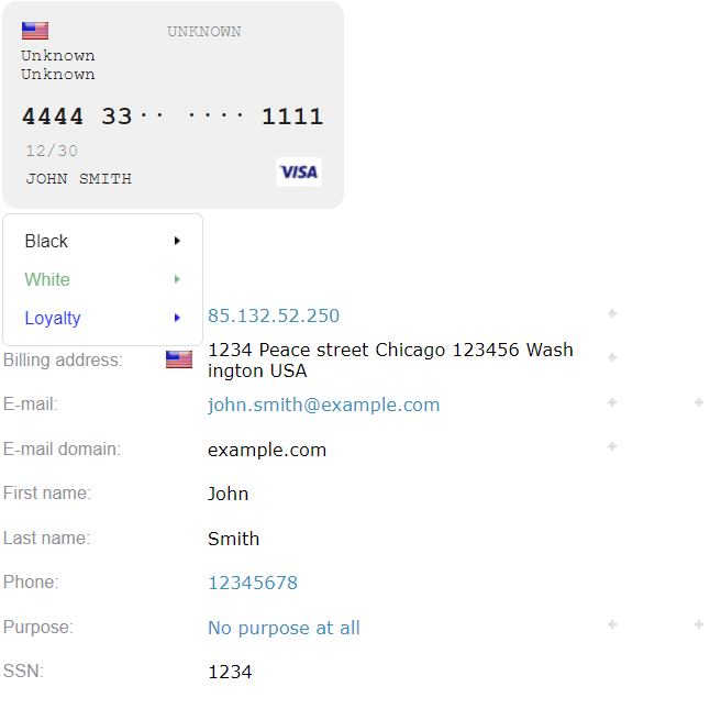 If the attribute is found in any white list the third-party fraud control systems’ checks are excluded either.